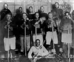 En 1894 se fundó en Nueva Escocia una liga de hockey sobre hielo para negros, conocida como la Liga de Hockey de Color,[87] en la que participaban jugadores negros de las provincias marítimas de Canadá: Nueva Escocia, Nueva Brunswick, Isla del Príncipe Eduardo. La liga comenzó a jugar 23 años antes de que se fundara la National Hockey League y, como tal, se le atribuyen algunas innovaciones que existen en la actualidad en la NHL.[88] Lo más notable es que se afirma que el primer jugador que utilizó la Slap Shot fue Eddie Martin de los Eurekas de Halifax, hace más de 100 años.[89] La liga permaneció en funcionamiento hasta 1930.