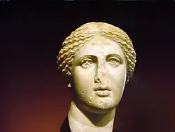 En la mitología griega, Afrodita (en griego antiguo, Ἀφροδίτη; en griego moderno, Αφροδίτη; en latín, Aphrodite) es la diosa de la belleza, la sensualidad y el amor. Su equivalente romano es Venus. Según Hesíodo, Afrodita había nacido de la espuma del mar formada a partir de los genitales cercenados de Urano.[1]​ Según Homero, Afrodita nació de la unión entre Zeus y Dione.[2]​ Afrodita ocupaba un lugar en el panteón entre los doce dioses olímpicos. De su nombre se desprenden acepciones, como las palabras «afrodisíaco» o «hermafrodita», y de su nombre en romano antiguo (Venus o Veneris) provienen, por ejemplo: «venerar», «venera» y «venérea» (referido a lo sexual).