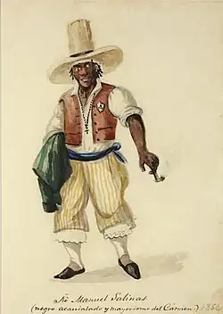 ![]() Ño Manuel Salinas (negro acaudalado y mayordomo del Carmen) (acuarela de Pancho Fierro, 1858) | ||