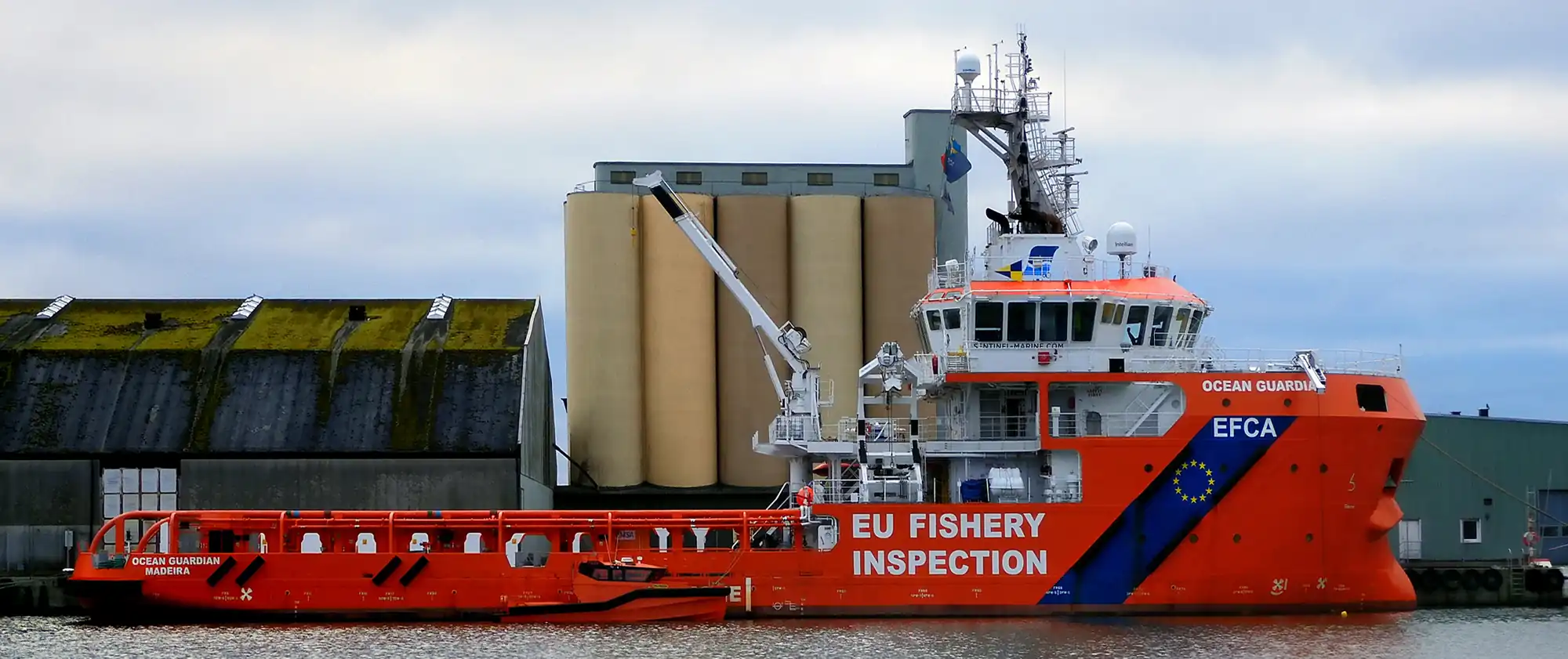 ![]() Un buque de la Agencia Europea de Control de la Pesca en el puerto de Ystad el 15 de noviembre de 2023. | ||