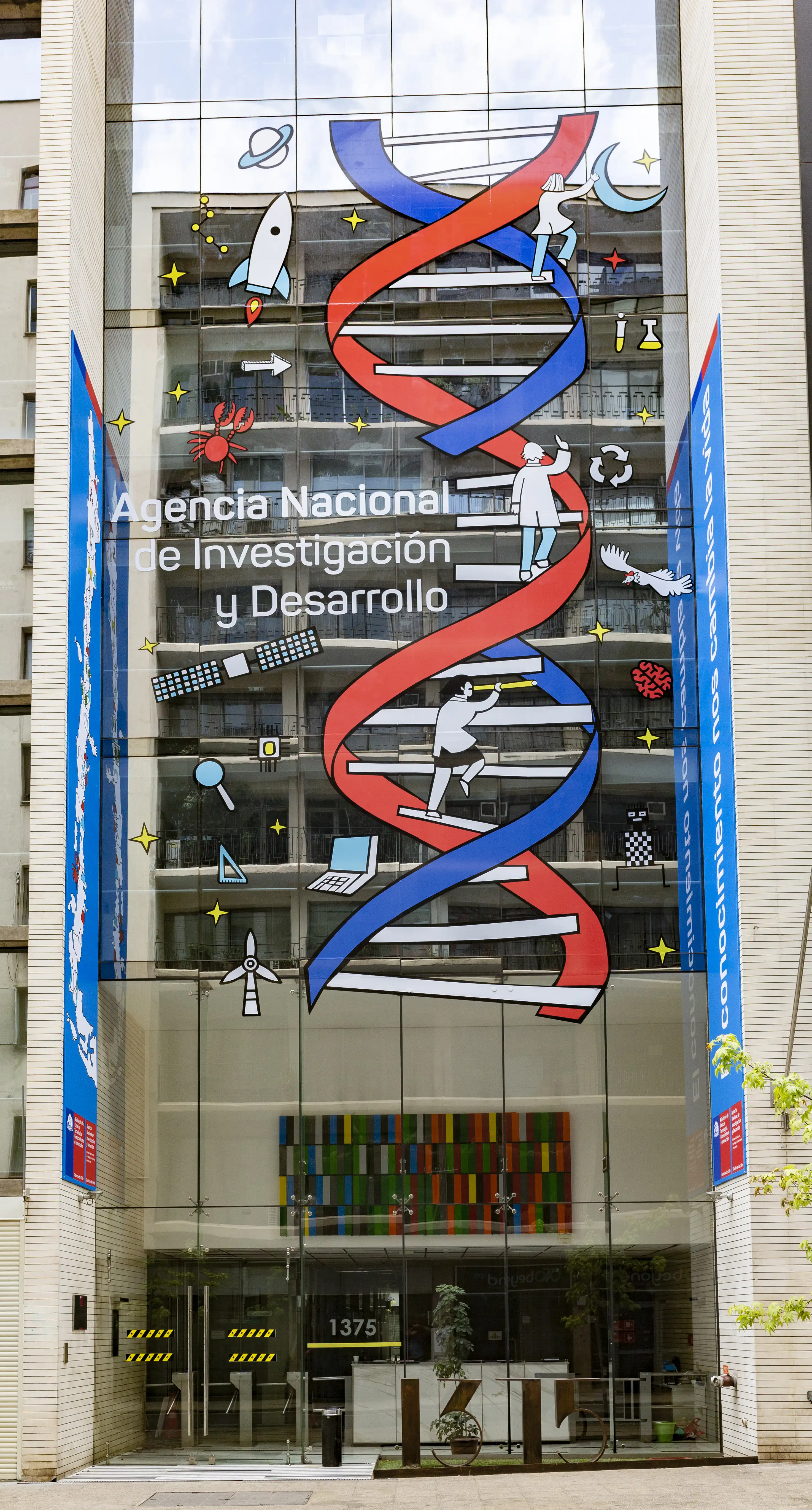 ![]() Fachada de las oficinas de la ANID, anteriormente el edificio de la Comisión Nacional de Investigación Científica y Tecnológica (CONICYT). | ||||
