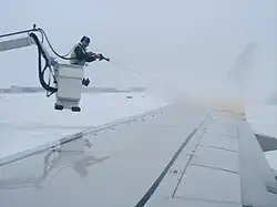 - Extracción de hielo de las alas: derretimiento del hielo en alas con camiones diseñados para este propósito, este servicio es proporcionado solo cuando es necesario.