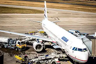 - Repostaje de combustible: Abastecimiento de combustible de aviación con un camión cisterna.