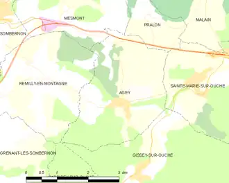 Agey es una población y comuna francesa, en la región de Borgoña, departamento de Côte-d'Or, en el distrito de Dijon y cantón de Sombernon.