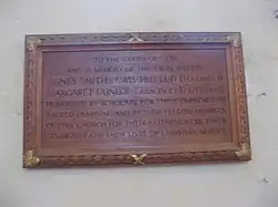 Las hermanas utilizaron su herencia para mejorar los terrenos y parte de los edificios del Westminster College en Cambridge.[1] Esto fue mucho después de que a los inconformistas se les permitiera convertirse en miembros de pleno derecho de las universidades de Oxbridge mediante la derogación de las Test Act; y luego que ese colegio presbiteriano se mudara desde Queen Square, Londres a un sitio adquirido de St John's College, Cambridge en 1899. También ayudaron al establecimiento de la capellanía presbiteriana de la Universidad de Oxford, actualmente la Iglesia Reformada Unida de San Columba en Oxford.