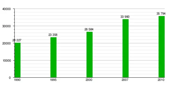 | Gráfica de evolución demográfica de Agoncillo de Batangas (municipio) entre 1990 y 2010 |
