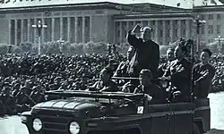 ![]() El 18 de agosto de 1966, Mao Zedong se reunió con Guardias rojos en la Plaza de Tiananmén por primera vez, lo que provocó una masacre masiva en Beijing. | ||