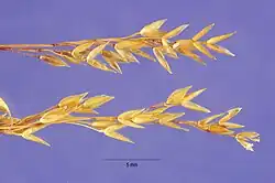 Tiene un crecimiento en forma de mechones de hasta 30 centímetros de altura de hierba perenne. La inflorescencia es cilíndrica delgada de espiguillas diminutas, cada una de hasta 4 milímetros de longitud.