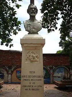 "¡Qué lugar tan bello! El Lazareto está todo rodeado de montes y colinas deliciosas; espesos bosques y verdes prados alegran la mirada en cuanto el horizonte abarca. Hay sitios verdaderamente encantadores, y extensos valles que, si se cultivasen, serían fertilísimos. Pero... ninguno quiere venir aquí: la lepra espanta a todos. En Bogotá, que dista tan poco de estos infelices, al hablar de la lepra, ¡Ave María! se espantan, tiemblan de miedo, y no quieren ni oírla nombrar. Quien viene a este Lazareto es objeto de pública admiración. Por eso no es fácil que yo vuelva a Bogotá. Un viaje de tres días en mula puede ser bello, si se quiere, pero bajo un sol abrasador no ofrece muchos atractivos para decidirse uno a dar tal paseo: y además, temería tener que hacer cuarentena antes de entrar en la capital."[5]