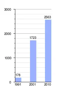 | Gráfica de evolución demográfica de Aguas Calientes entre 1991 y 2010 |