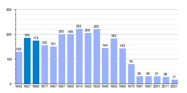 | Gráfica de evolución demográfica de Aguasal[3] entre 1842 y 2021 |