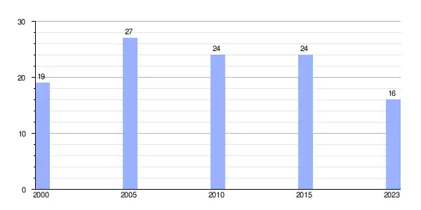 | Gráfica de evolución demográfica de Aguasmestas entre 2000 y 2023 |