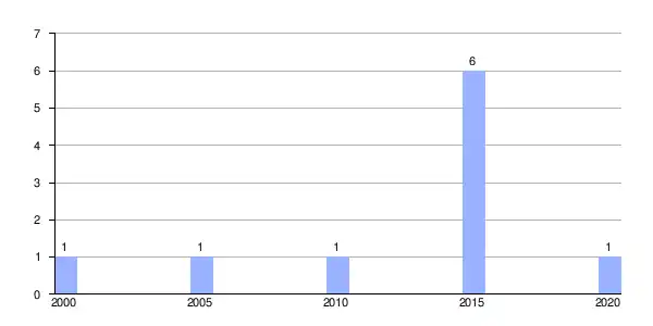 | Gráfica de evolución demográfica de Aguela entre 2000 y 2020 |