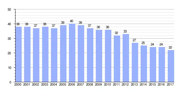 Población de derecho (2000-2017) según los censos de población del INE a 1 de enero de cada año.[7] |