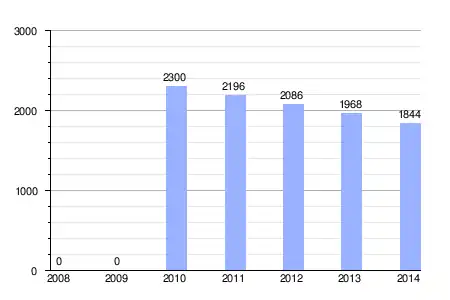| Gráfica de evolución de la deuda viva del ayuntamiento entre 2008 y 2014 |