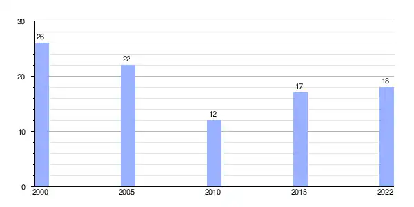 | Gráfica de evolución demográfica de Aguís (lugar) entre 2000 y 2022 |