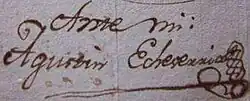 ![]() Firma de Agustín de Echeverría | ||