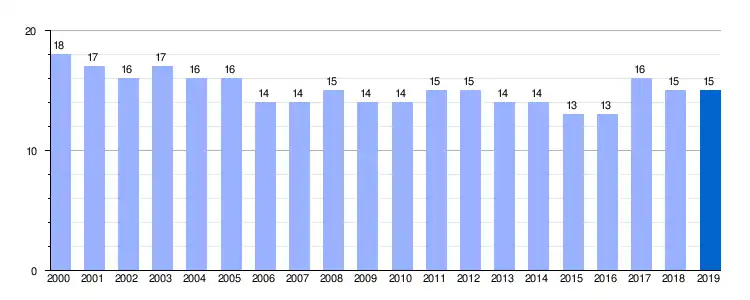 | Gráfica de evolución demográfica de Ahedo de las Pueblas entre 2000 y 2019 |