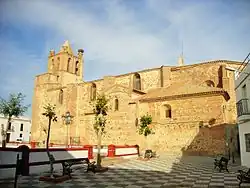 Perteneciente a la archidiócesis de Mérida-Badajoz.[7] La iglesia del siglo XVI, de mampostería y ladrillo cuya fachada presenta el característico estilo mudéjar de la comarca. Consta de una sola nave en tres tramos. Su torre, de planta cuadrada, tiene cuatro cuerpos separados entre sí por cornisas horizontales. En la fachada tiene una portada de piedra tallada con arco peraltado y tímpano triangular cerrado, enmarcado el conjunto por dos altas columnas.[8] El campanario doble está rematado por un chapitel. Aunque el exterior conserva su primitiva imagen, el interior ha sido restaurado recientemente. En su interior se conserva una de las imágenes más valiosas del pueblo, el Cristo del Socorro, de 1630, atribuida al imaginero extremeño Francisco Morato y una de las mejores obras de la imaginería del siglo XVII. Otras imágenes muy antiguas son la Virgen de la Rosa y la imagen de San Juan Bautista procedentes de las ermitas de la Rosa y San Juan, hoy desaparecidas.