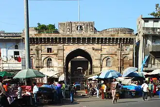 En 1487, Mahmud Begada, nieto de Ahmed Shah, fortificó la ciudad con una muralla exterior 10 km (6,2 mi) de circunferencia y compuesta por doce puertas, 189 baluartes y más de 6.000 almenas.[27] En 1535 Humayun ocupó brevemente Ahmedabad tras capturar Champaner cuando el gobernante de Guyarat, Bahadur Shah, huyó a Diu.[28] Ahmedabad fue entonces reocupada por la dinastía muzaffarid hasta 1573, cuando Guyarat fue conquistada por el Mughal emperador Akbar. Durante el reinado mogol, Ahmedabad se convirtió en uno de los prósperos centros comerciales del Imperio, principalmente en el sector textil, que se exportaba hasta Europa. El soberano mogol Shahjahan pasó la plenitud de su vida en la ciudad y patrocinó la construcción del Moti Shahi Mahal en Shahibaug. La hambruna del Decán de 1630-32 afectó a la ciudad, al igual que las hambrunas de 1650 y 1686.[29] Ahmedabad siguió siendo la sede provincial de los mogoles hasta 1758, cuando rindieron la ciudad a los marathas.[30] Durante el periodo de gobierno del Imperio Maratha, la ciudad se convirtió en el centro de un conflicto entre los Peshwa de Poona y los Gaekwad de Baroda.[31] En 1780, durante la Primera Guerra Anglo-Maratha, una fuerza británica al mando de James Hartley asaltó y capturó Ahmedabad, pero fue devuelta a los marathas al final de la guerra. La Compañía Británica de las Indias Orientales se apoderó de la ciudad en 1818 durante la tercera guerra anglo-maratha.[32] En 1824 se estableció un acantonamiento militar y en 1858 un gobierno municipal.[32] Incorporada a la Presidencia de Bombay durante el Gobierno británico, Ahmedabad se convirtió en una de las ciudades más importantes de la región de Guyarat. En 1864, la Bombay, Baroda, and Central India Railway (BB&CI) estableció un enlace ferroviario entre Ahmedabad y Mumbai (entonces Bombay), lo que permitió el tráfico y el comercio entre el norte y el sur a través de la ciudad.[32] Con el tiempo, la ciudad se estableció como sede de una industria textil en desarrollo, lo que le valió el sobrenombre de "Manchester del Este".[33]