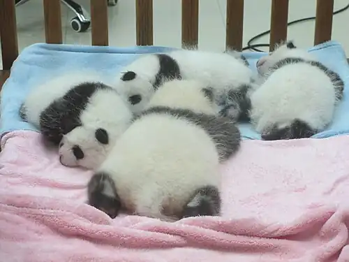 El 9 de julio de 2005, Tai Shan, una cría macho, nació en el National Zoo de Washington. Sus padres (a través de inseminación artificial) son Mei Xiang (H) y Tian Tian (M).