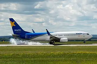 ![]() Boeing 737-800 de Kharkiv Airlines aterrizando en el Aeropuerto Internacional de Járkov (2014) | |||||
