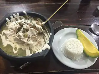 El ajiaco bogotano o santafereño es una sopa típica y tradicional de la región de Bogotá, Cundinamarca, Colombia,[1] a base de pollo y diferentes clases de papa.[2] A diferencia de lo que sugiere su nombre, el ajiaco no es picante.