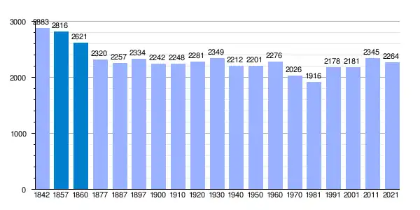 Los diversos censos de población muestran un ligero pero constante descenso demográfico desde principios de siglo hasta 1981. En 1900 había 2208 habitantes; en 1930, 2278 habitantes; en 1960, 2088 habitantes; en 1970, 2002 habitantes y el de 1981, 1871 habitantes.