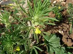 Es una pequeña planta herbácea anual que no sobrepasa los 25 cm de altura. Tallos cuadrangulares y velludos, ramificados desde su base, rastreros, erectos en su extremo, que en conjunto forman una mata en forma de cojín. Las hojas son opuestas, trífidas y sésiles. Las flores son solitarias, axilares, de color amarillo. Toda la planta desprende un aroma similar al del geranio.