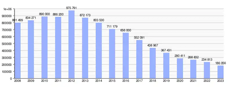 | Gráfica de evolución de la deuda viva del Ayuntamiento entre 2008 y 2023 |