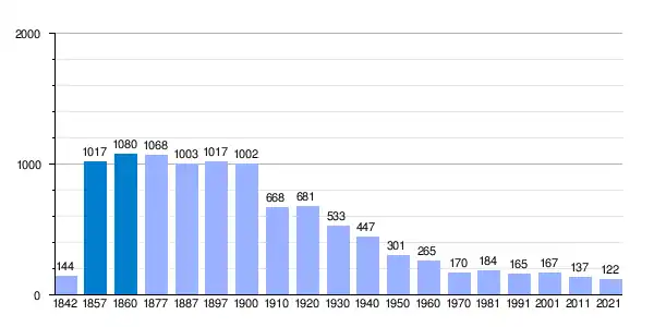 | Gráfica de evolución demográfica de Alòs de Balaguer[4] entre 1842 y 2021 |