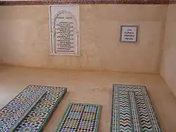 - ↑ El mausoleo se construyó en 1970, ya que hasta la fecha las tumbas estaban en ruinas, como toda la vieja ciudad de Agmat. El lugar se conoce como la tumba del forastero (qabr al-garib) debido al epitafio que el mismo rey poeta escribió y que empieza: «Tumba de forastero, que la llovizna vespertina y la matinal te rieguen, porque has conquistado los restos de Ibn ‘Abbad».