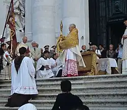 | Benedictus Deus in Angelis suis, et in Sanctis suis. Amen. | Bendito sea Dios en sus ángeles y sus santos. Amén. |