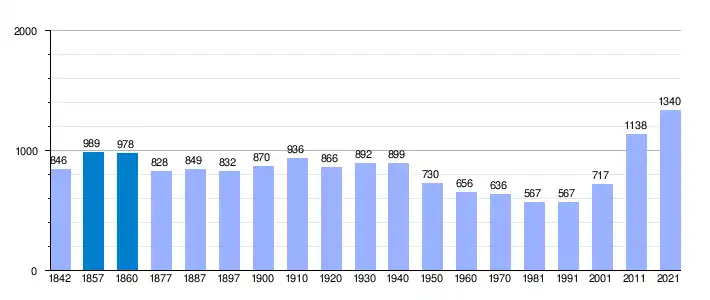 Gráfica de evolución demográfica de Albalat de Taronchers[4]​ entre 1842 y 2021