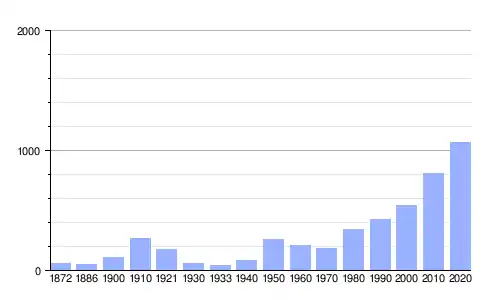 | 1900 | 113 | +105.5 % |