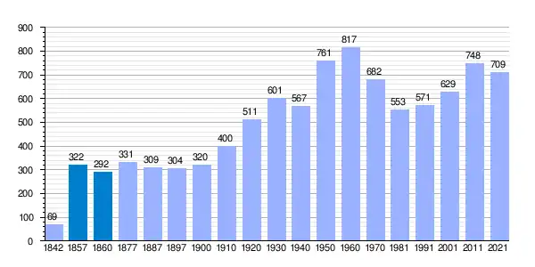 | Gráfica de evolución demográfica de Albarreal de Tajo[5] entre 1842 y 2021 |