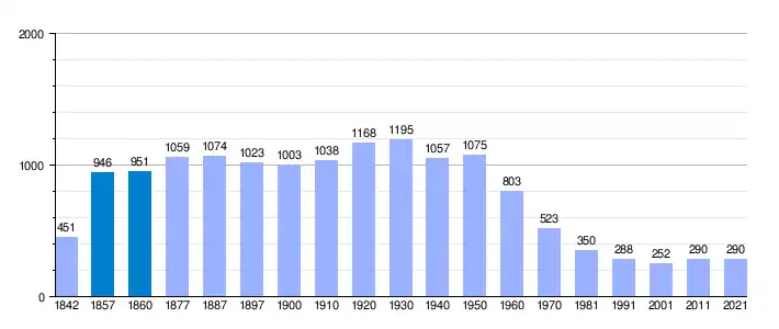 | Gráfica de evolución demográfica de Albentosa[4] entre 1842 y 2021 |