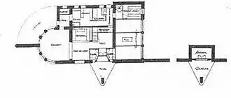 Constaban de un acceso principal en el centro con una marquesina apoyada en un pilar triangular; una pequeña sala de estar, con una chimenea de ladrillo visto; un comedor en rotonda con grandes ventanales abiertos a una terraza para contemplar el panorama, cocina, vivienda del administrador, comedor de mecánicos, aseo, cabina telefónica, almacén, y cuatro cocheras con un taller con suministrador de gasolina al que se accedía desde el exterior.