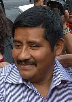 ![]() Patishtán Gómez tras obtener su libertad el 31 de octubre de 2013. | ||