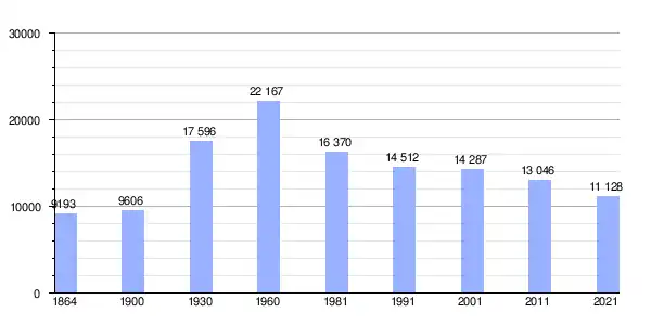| Gráfica de evolución demográfica de Alcácer do Sal entre 1864 y 2021 |