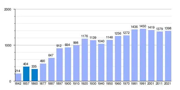 Gráfica de evolución demográfica de Alcántara de Júcar[2]​ entre 1842 y 2021