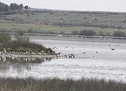 Tienen además cierta importancia por su riqueza biológica las lagunas, principal exponente de La Mancha Húmeda, en particular el complejo lagunar de Alcázar de San Juan.[2] Próximo a la población, está compuesto por tres lagunas, llamadas La Veguilla, Laguna del Camino de Villafranca y Laguna de Las Yeguas. Es una zona de alto valor natural, lo que ha propiciado la adopción de figuras de protección y reconocimiento como: refugio de fauna, zona de especial protección de aves (ZEPA), Reserva de la biosfera de la Mancha Húmeda (UNESCO), Humedales de importancia internacional (RAMSAR). Su acopio permanente de agua las han convertido en un importante refugio de aves en tiempos de sequía, debido a la reducción de otros espacios como el parque nacional de las Tablas de Daimiel. Durante todo el año pueden encontrarse aves como flamencos y garzas.