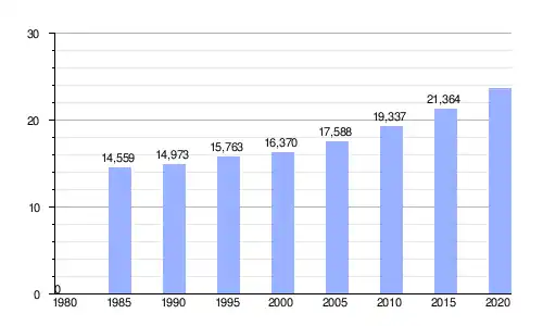 | Gráfica de evolución demográfica de Alcalá entre 1980 y 2020 |