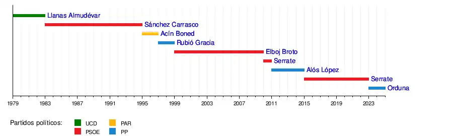 | 2019-2023 | Luis Felipe Serrate | Partido Socialista Obrero Español (PSOE) |