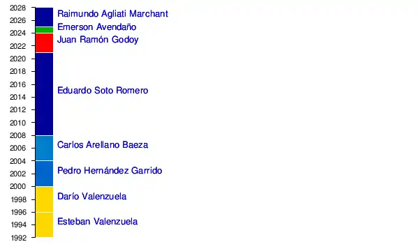 - ↑ Alcalde suplente, electo tras inhabilidad temporal de Juan Ramón Godoy para ejercer el cargo.