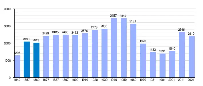 | Gráfica de evolución demográfica de Alcaucín[3] entre 1842 y 2021 |