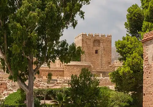 La alcazaba, castillo y murallas del Cerro de San Cristóbal de la ciudad española de Almería es uno de los conjuntos monumentales y arqueológicos andaluces más importantes de la península ibérica. Sus casi mil años de historia nos han permitido conocer la evolución experimentada en la arquitectura civil y militar durante la dominación árabe en Al-Ándalus, debido a su construcción en diferentes fases y épocas, como el castillo y torres de época bajomedieval cristiana (siglos XV-XVI), así como el origen y evolución de la ciudad (con un perímetro en total de toda la fortificación, según la Oficina de Turismo de Almería, de 1430 metros, contabilizando el castillo bajomedieval, la alcazaba conservada en la actualidad y el resto de murallas exteriores).[4][5]