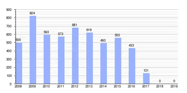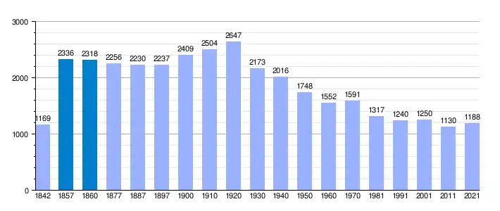 | Gráfica de evolución demográfica de Alcolea de Cinca[5] entre 1842 y 2021 |