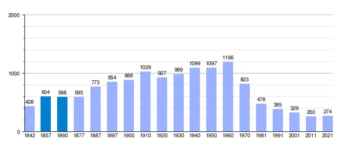 | Gráfica de evolución demográfica de Alcollarín[6] entre 1842 y 2021 |