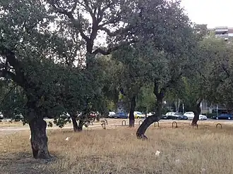 Este conjunto relicto de alcornoques, se situaría a lo largo de la vía pecuaria denominada "Colada de Esparteros" que atraviesa los municipios de Alcorcón y Leganés de sureste a noroeste; hoy en día se sitúa en la confluencia de la avenida de Esparteros y la Avenida del Pinar.